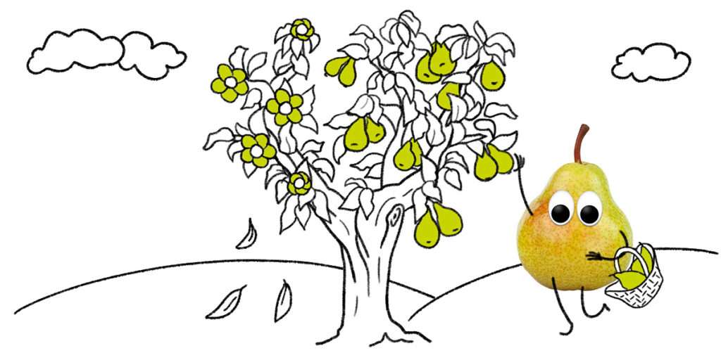 Wollt ihr wissen, woher ich komme? Hm, vor gaaanz langer Zeit wurden wir in Kleinasien entdeckt. Das ist weit, weit weg. Damals waren meine BirnenFreunde und ich richtig kleine BirnenZwerge. Jetzt kommen wir aus Deutschland und sind richtig groß – Du kannst sooo viel an uns rumknabbern . . .