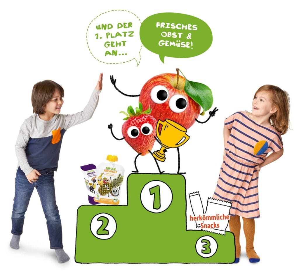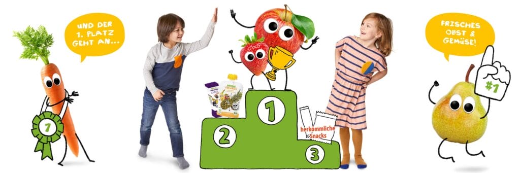 Wir bei Freche Freunde wollen die Ernährungsgewohnheiten künftiger Generationen schon früh positiv mitgestalten, damit Kinder langfristig besser essen. Mit unserer Mission „Eine frühe Freundschaft mit Obst und Gemüse“ wollen wir es Eltern deshalb so einfach wie möglich machen, ihren Kindern frisches Obst und Gemüse spielerisch nahe zu bringen. Wie wir das machen? Na ganz klar mit unserer bunten Freche Freunde Welt, viel Spiel & Spaß rund um unsere lustige Obst- und Gemüsefamilie rund um Karl Karotte, Bettie Birne und Co. und unseren einfachen und leckeren Rezeptideen für Groß und Klein. So werden aus kleinen Möhrenmuffeln noch richtige Karottenfans!