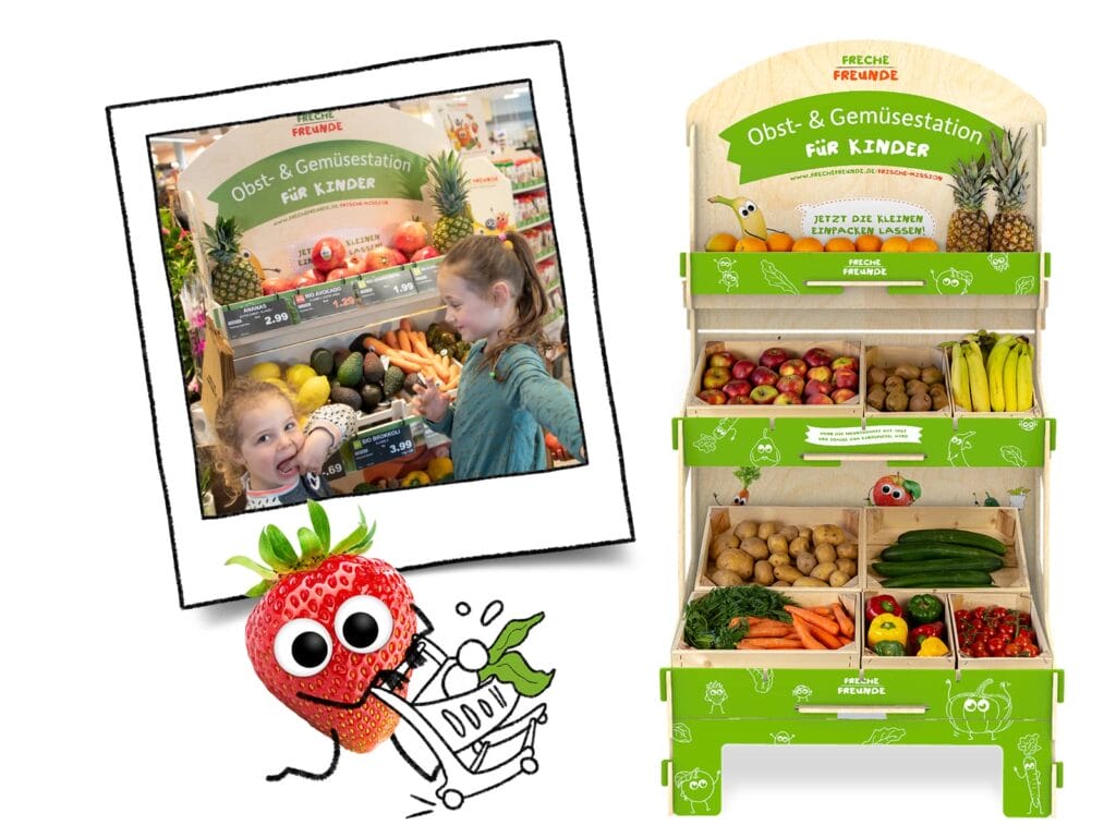 Für diese Mission setzen wir uns aktuell auch mit unseren frechen Obst-und Gemüse Stationen für Kinder ein, damit die Kleinen sich schon beim Einkaufen mit der bunten Obst und Gemüsefamilie anfreunden können! Schon entdeckt?