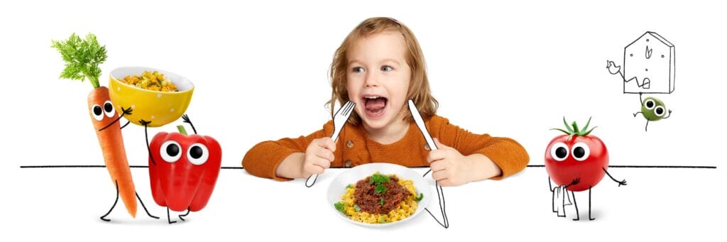 Um das Essverhalten von Kindern positiv zu beeinflussen, braucht es auch eine Veränderung auf ihrem Teller – das ist doch karottenklar! Unsere leckeren und einfachen Rezeptideen mit viel Obst- und Gemüse-Zutaten helfen Dir die Ernährung für Deine Kleinen immer wieder auf’s Neue bunt und abwechslungsreich zu gestalten. Außerdem findest Du dort Wissenswertes zum Thema Kinderernährung und hilfreiche Tipps und Tricks, die sogar Dein Kind zum spielerischen Mitkochen animieren.