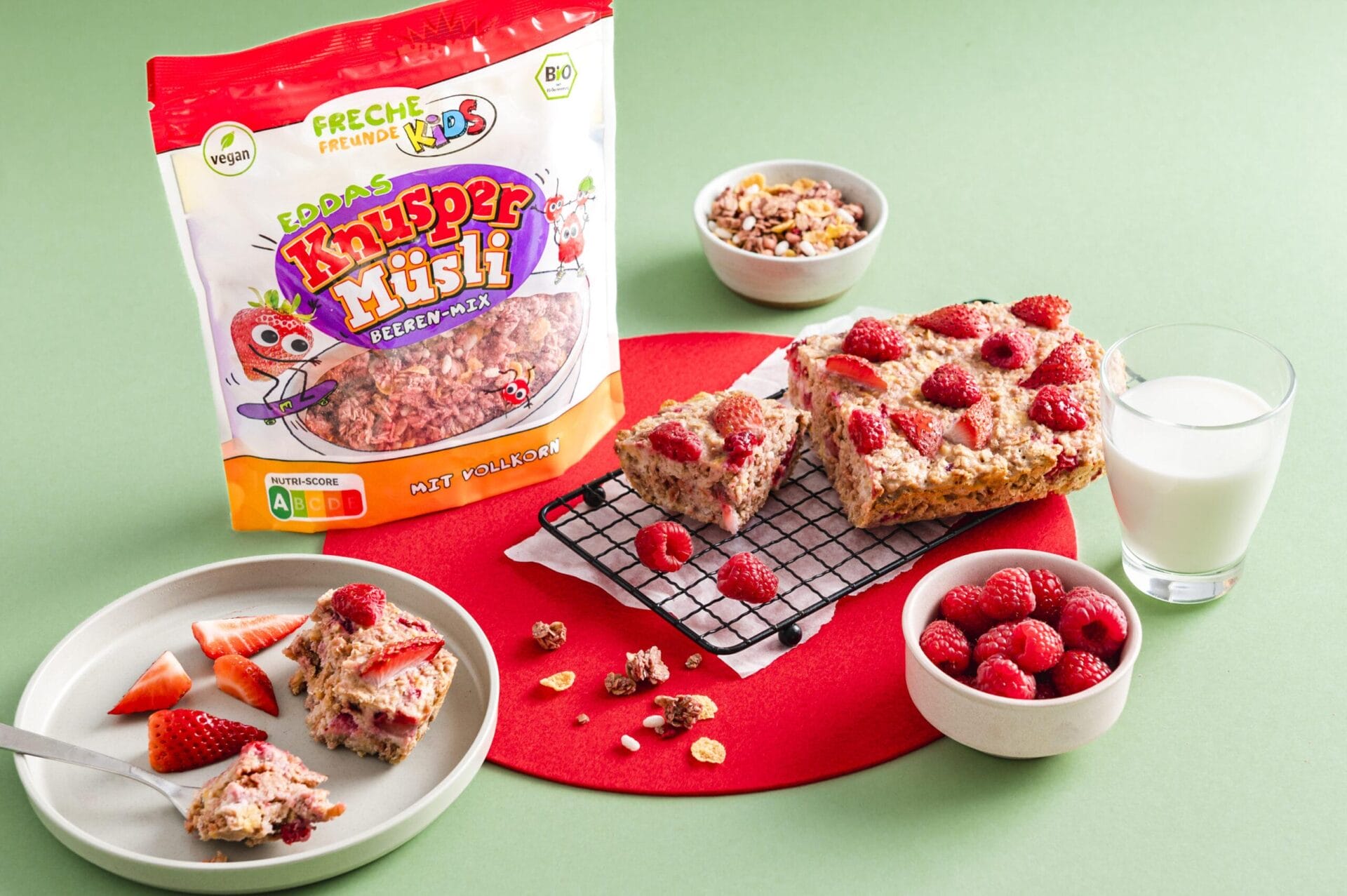 Einfacher Beeren Frühstückskuchen mit Eddas Knusper Müsli – Beerenmix von Freche Freunde Kids