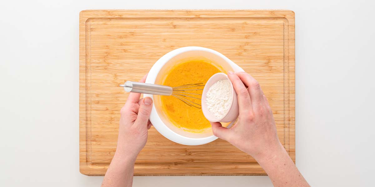 Eier, Mehl und Käse in einer Rührschüssel verrühren.